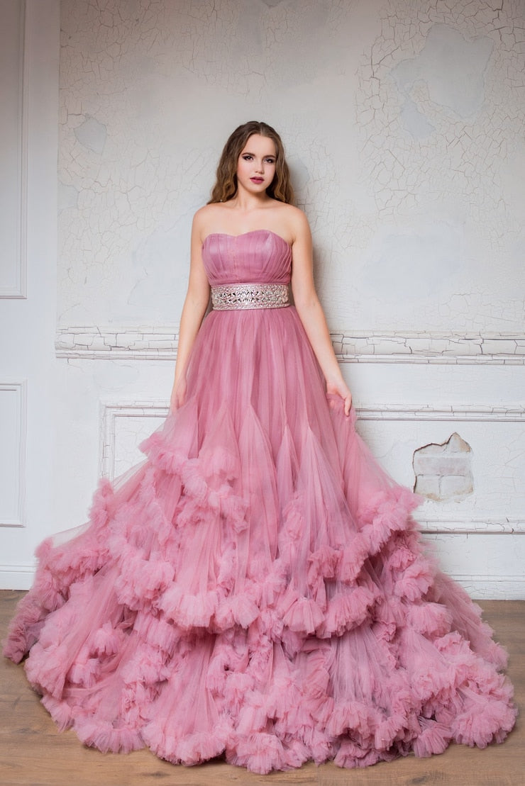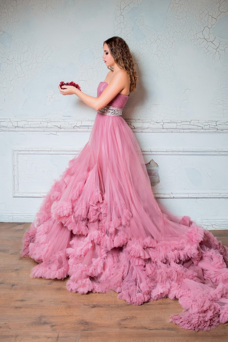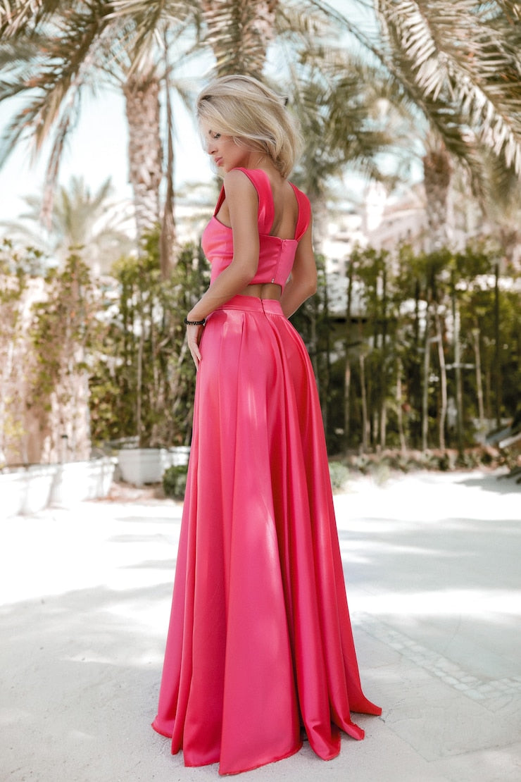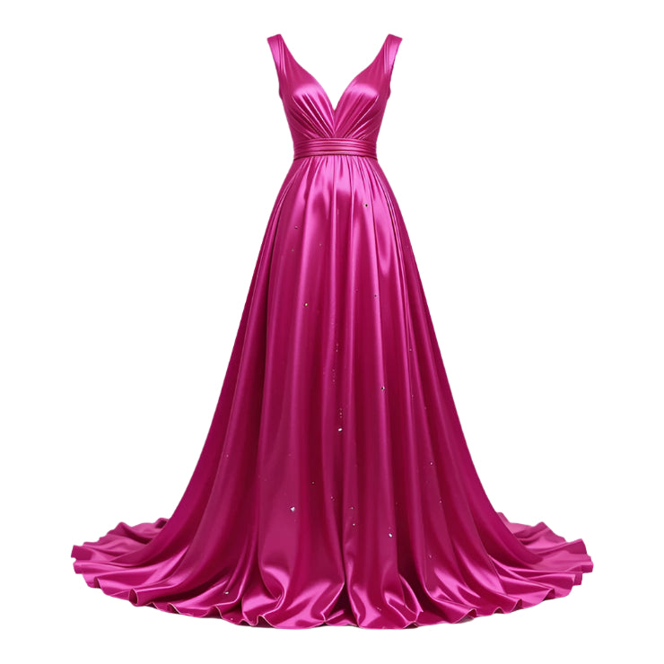 Step into timeless elegance with this luxurious magenta satin evening gown. Designed with a flattering deep V-neckline and cinched waist, this gown flows gracefully to the floor with a sweeping train for a dramatic finish. The soft, shiny satin fabric enhances your silhouette and adds a glamorous touch to any special event — perfect for weddings, galas, and red-carpet occasions.