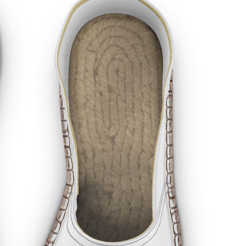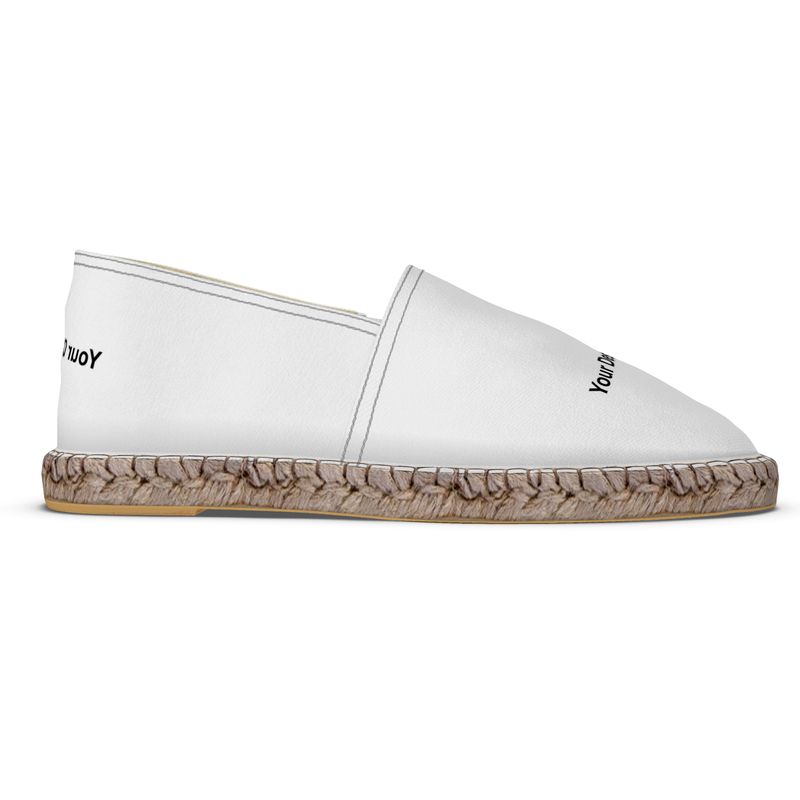 Perfect for summer days, our custom Espadrilles suit relaxed lifestyles at the beach, hanging with friends in the park, or just walking around town. Create your own espadrilles and design the upper canvas. Customize your espadrilles further with a personalized insole showing your brand name or message, or keep the traditional Jute insole. These personalized espadrilles with a hard-wearing non-slip rubber sole for structure and durability. Wholesale discounts available, no minimum order.