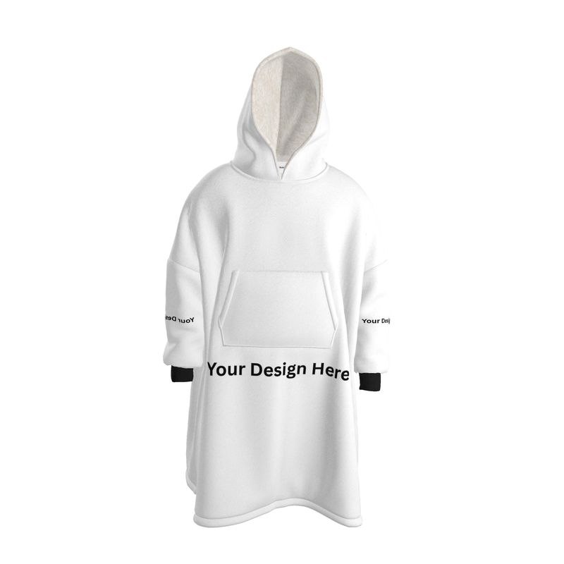 Experience unparalleled comfort with our personalized hoodie blanket. Customized with your own design this unisex, printed blanket hoodie is crafted from super comfy fleece, providing a cocoon of warmth. With a convenient front pocket for added functionality, you can choose from multiple rib and lining colors to suit your style. Personalize it further with our custom label option for a unique touch. Beyond comfort, our custom blanket hoodie is eco-friendly and sustainably made, aligning with your values. Discover the joy of our custom hoodie blanket and wrap yourself in warmth today.